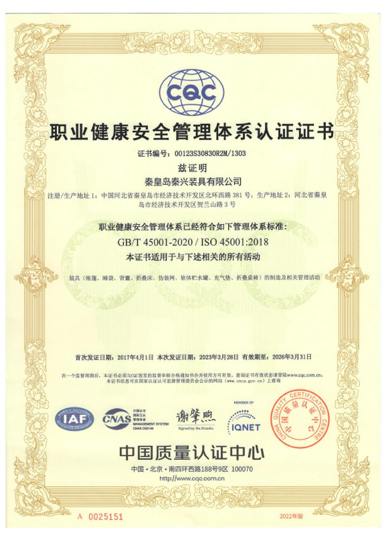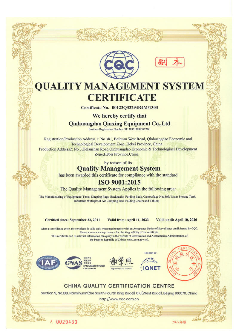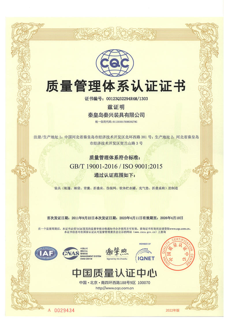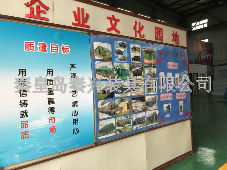 秦皇島秦興裝具有限公司有限公司源于我國第3524工廠,創(chuàng)建于2005年,占地面積30畝,是一家致力于研究,發(fā)展,制造和銷售為一體的綜合性裝具及紡織服裝加工生產企業,我們的主要產品有單、棉帳篷,民用帳篷,旅游帳篷集各種機工產品等。